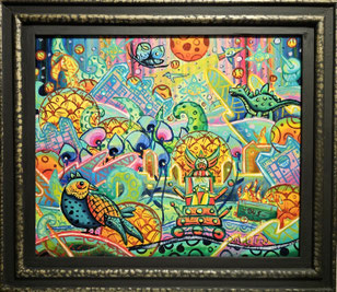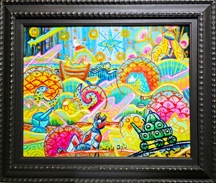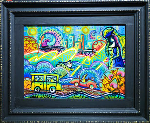 Daniele Cerù's style is difficult to define with a single term. It is a mix of elements that recall naive art, folk, and even aspects of surrealism. Its colours are lively and intense, the shapes are often simple but expressive, and there is a strong fantastic and dreamlike component in his works.